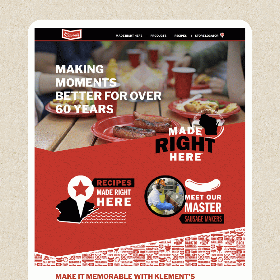 We knew to attack this challenge we’d need to uncover Klement’s® true roots—digging deep with consumers and uncovering every aspect of the family-owned brand; from factory workers and making the sausage (literally) to interviewing master sausage makers and Klement family members.