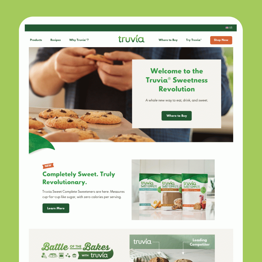 When Truvia developed a new product that turned the sweetener category on its head - Sweet Complete was a zero-calorie, plant-based sweetener that truly baked and browned like sugar in a way no product ever had. This opened the aperture to new audiences and applications. In turn, we started a Sweetness Revolution by proving Truvia was THE sugar replacement for anyone remotely interested in reducing sugar.